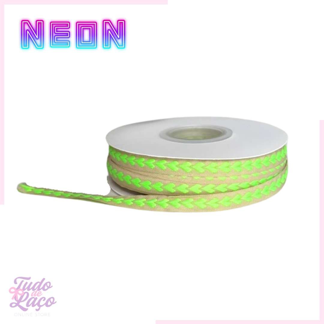 FITA CORAÇÃO BORDADO VERDE NEON (N2) – 1 METRO